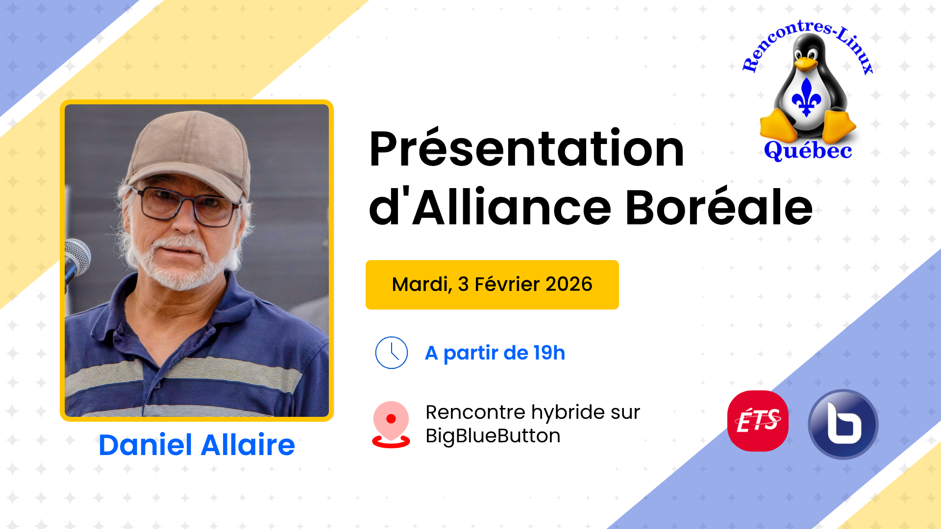 Daniel présentera un point d’étape sur l’Alliance Boréale : une initiative de coopération autour du logiciel libre pour bâtir des services numériques souverains, interopérables et durables. Il couvrira l’intention et la vision, l’état d’avancement de la constitution (valeurs, gouvernance), l’avancement technique (socle Linux et services), puis les prochaines étapes et besoins de contribution.