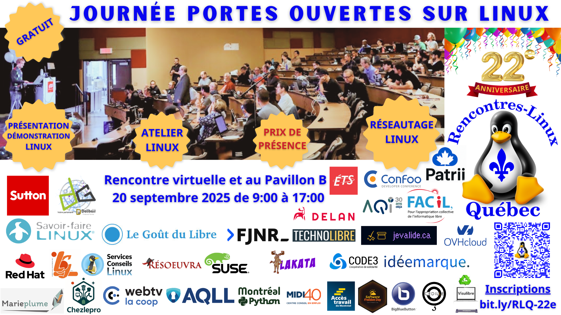 Organisateur des Rencontres-Linux au Québec (Linux-Meetup) depuis 2003 (22 ans)